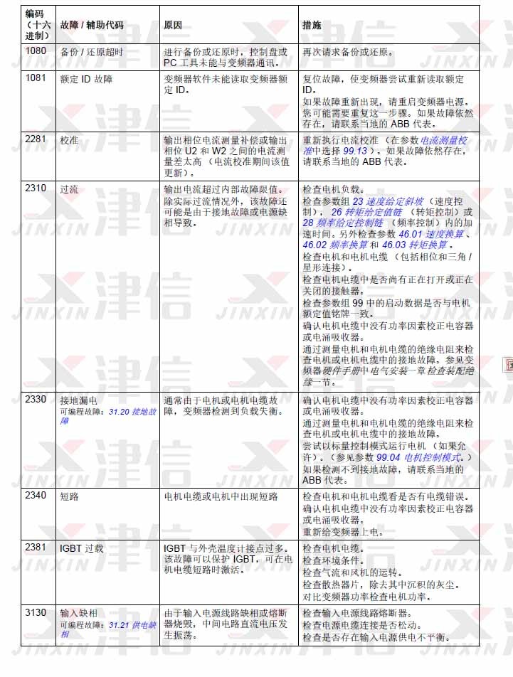 1. ABB ACS580變頻器故障代碼1080,1081,2281,2310,2330,2340,2381,3130