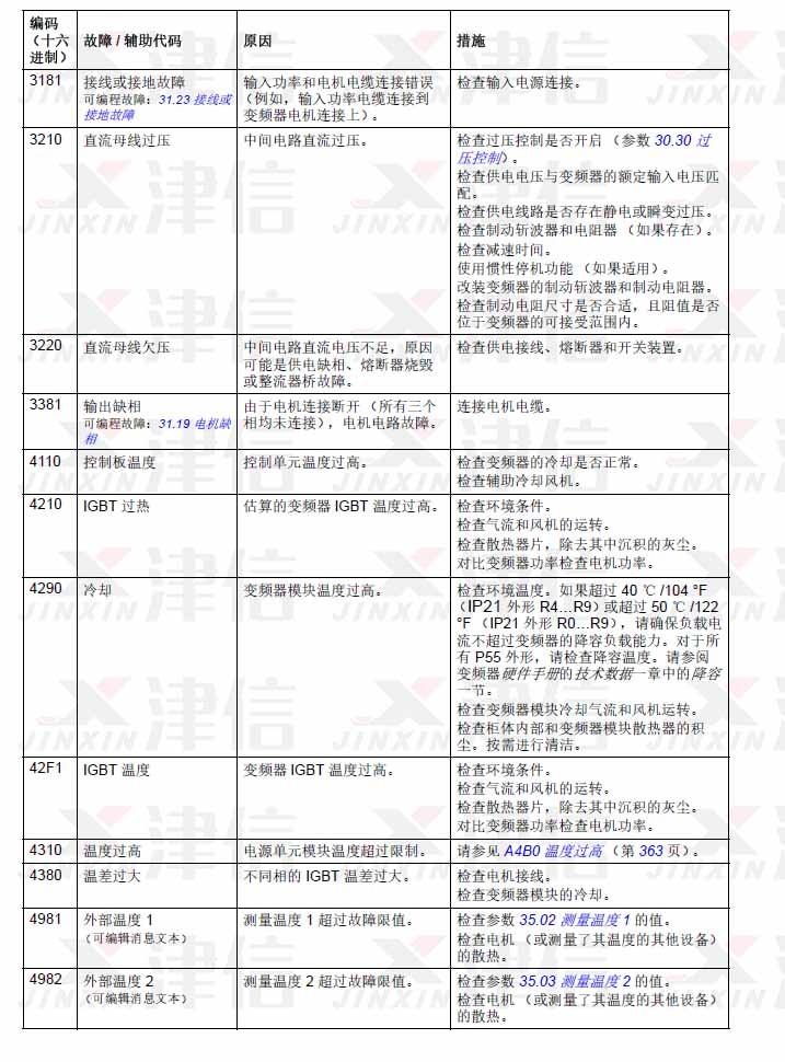 1. ABB ACS580變頻器故障代碼 3181,3210,3220,3381,4110,4210,4290,42F1,4310,4380,4981,4982