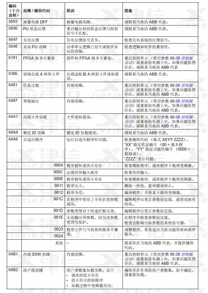 1. ABB ACS580變頻器故障代碼5693,5696,5698,6181,6306,6481,6487,64A1,64A4,64A6,64B1,64B2