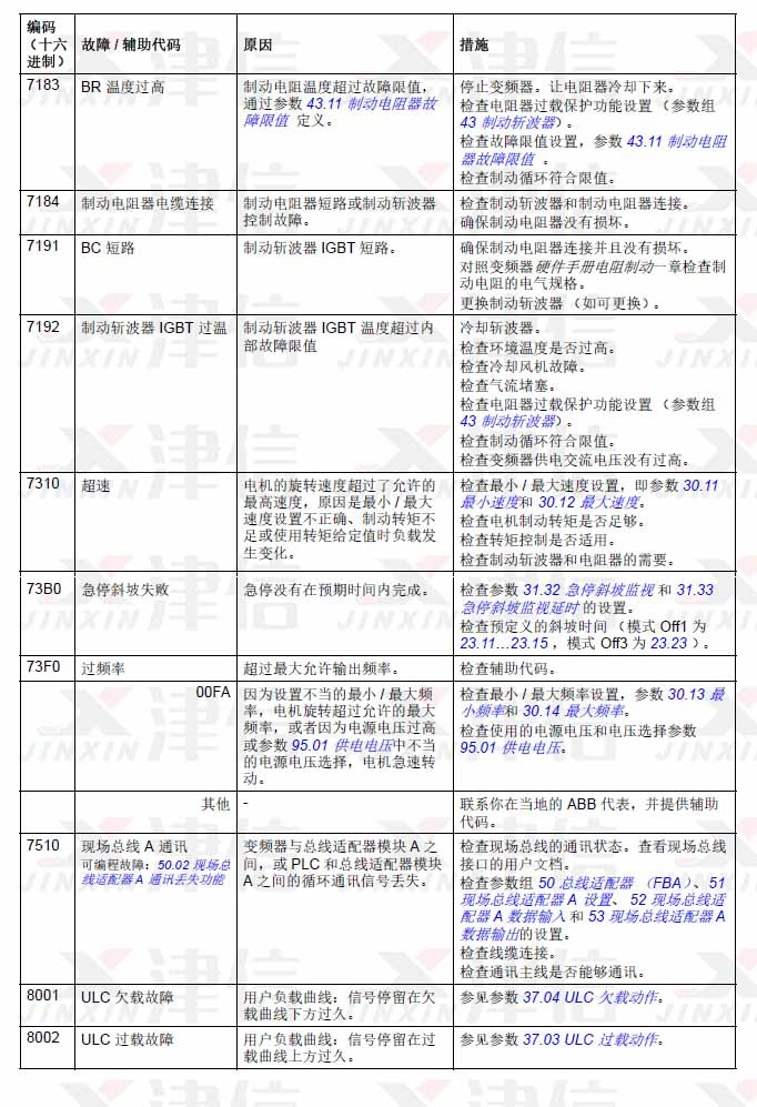 1. ABB ACS580變頻器故障代碼7183,7184,7191,7192,7310,73B0,73F0,7510,8001,8002