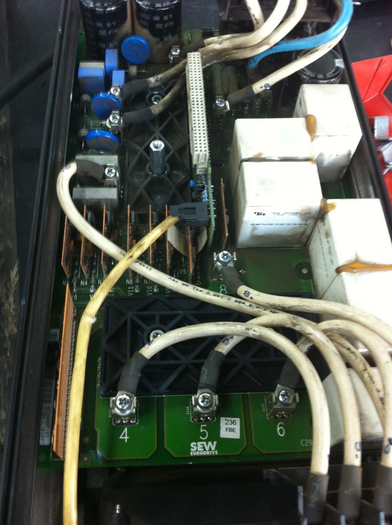 由于變頻器使用的場合比較特殊,并且該機器配備同步控制功能,客戶對于該機器保養(yǎng)很好,機器內(nèi)部比較干凈。因此該機器發(fā)生故障肯定是由于器件本身損壞導致。