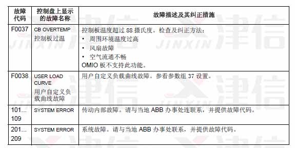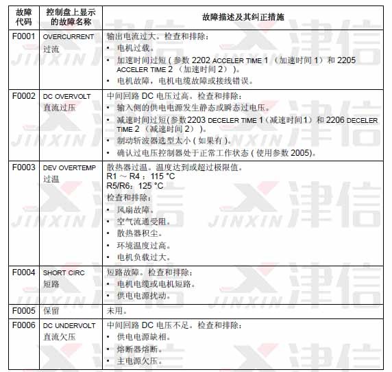 可以通過MENU/ENTER鍵來清除故障信息。如果故障依然存在,故障信息會在幾秒鐘后再次出現。此時需要根據故障代碼來進行相應的檢查和采取應對措施。