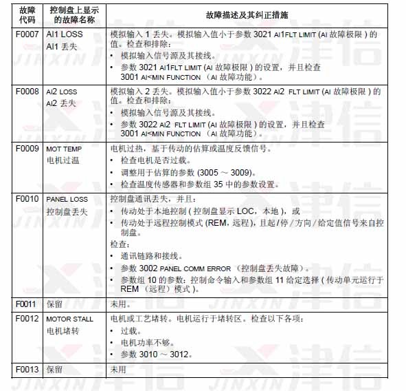 當ACS510出現故障時,變頻器會停止運轉,紅色LED指示燈亮,并在顯示器上顯示故障代碼。