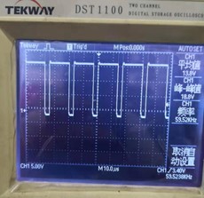 6,查看電源卡開關(guān)電源部分的圖紙,檢查IC2844的前級啟動電阻和整流橋均正常,最后檢查脈沖變壓器供給IC2844的次級供電回路,發(fā)現(xiàn)啟動電容降容超出15%,判定為損壞,將此電容更換后,再次上電機(jī)器顯示正常,測量開關(guān)管驅(qū)動波形正常,原故障修復(fù)。以下是2844輸出的正常波形。